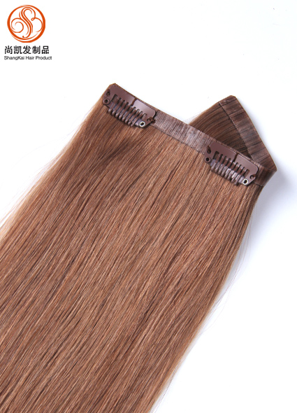 This new design are similar with tape hair ,instead of using tape,it sewed with clips ,easy to remove and take care